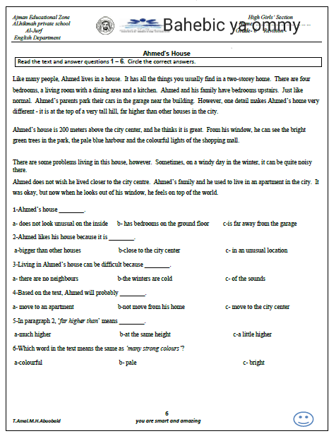 اوراق عمل انجليزي للصف السادس معهد الامارات