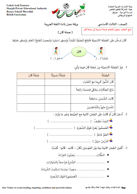 ورقة عمل كان وأخواتها في اللغة العربية للصف الخامس الفصل الثاني مدرستي الاماراتية