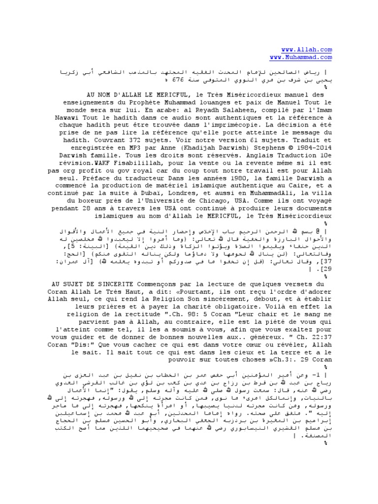 أحاديث نبوية بالفرنسية والعربية Mahomet Priere